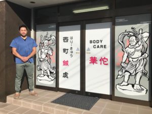 鍼灸院 西町鍼處様の入口ウィンドウに、サイン・イラストを制作させていただきました!