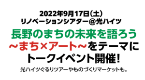 レトロビル一棟を映画館のように ゆっくり楽しんでいただく手作りのお祭り リノベーションシアター@光ハイツ 2022年9月17日(土)開催!会場:アドイシグロ(東鶴賀町30番地) レトロビル一棟をゆっくり楽しんでいただくお […]