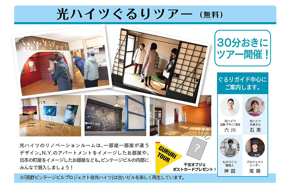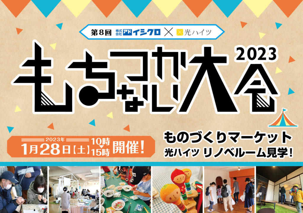 恒例の看板屋アドイシグロと光ハイツの「もちつき大会」は、今年もものづくりイベントに大変身。皆さまに、ウシグロ君切り餅プレゼント!個性豊かなアーティストさん達と作る「ものづくりマーケット」やレトロビルを楽しむ「光ハイツぐるりツアー」など盛りだくさんです。見て、体験して、楽しい時間を一緒に過ごしましょうね~!