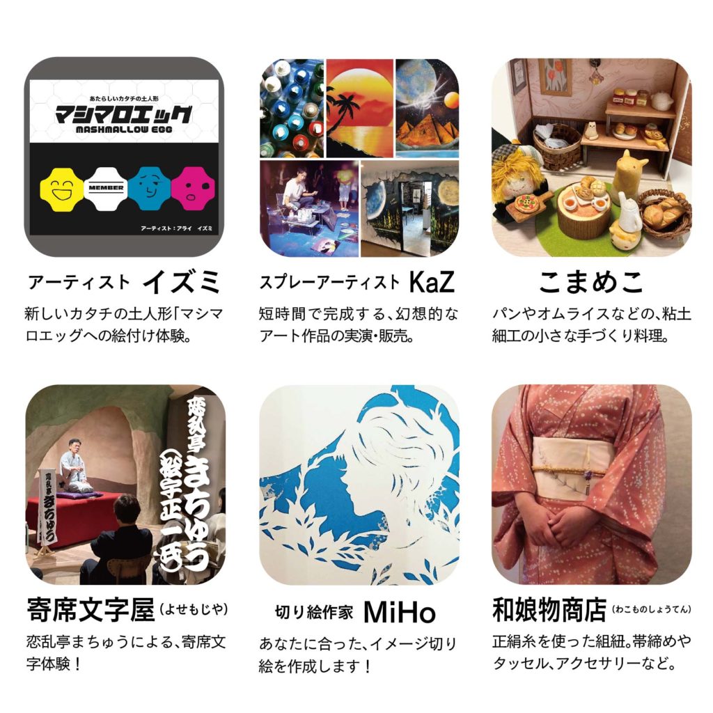 個性豊かなアーティストさん達と作る「クラフトマーケット」は、ワークショップなども楽しめます!まちなかみどりラボのアート展も開催。大人から子供まで、見て、体験して、楽しい時間を一緒に過ごしましょう!