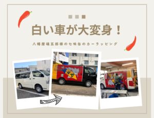 八幡屋礒五郎様の七味缶のカーラッピングをさせていただきました! 今回は、クルマ缶のハイエース版です。 (Before写真) 全面にビジュアルを施工するために、工夫が込められています! 窓には細かな穴の空いた、ワンウェイシ […]