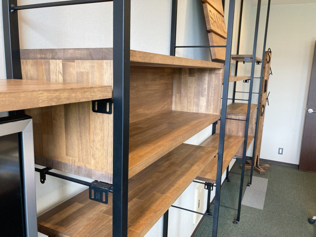 棚は好きな位置に掛け替えられるフレキシブルな造り。