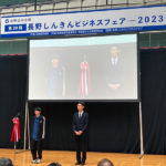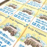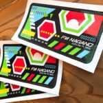 スタジオの窓からも見える北信五岳を形どった磨りガラス調のシートサイン。