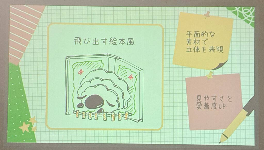 そこで私は、「飛び出す絵本風」のオブジェを提案しました。