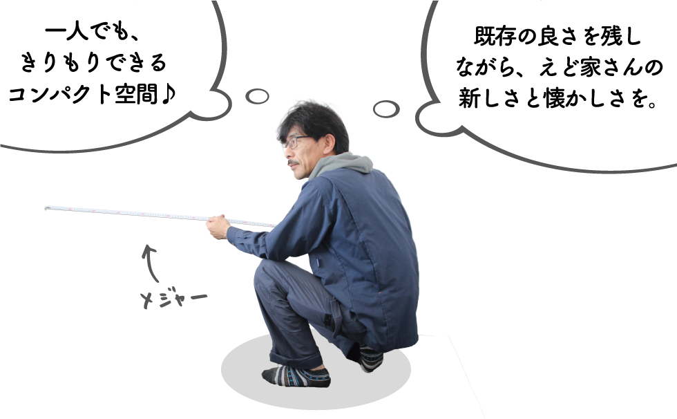 オリジナルのえど家ロゴマークを、黒いシャッターに映えるデザインにアレンジしました。